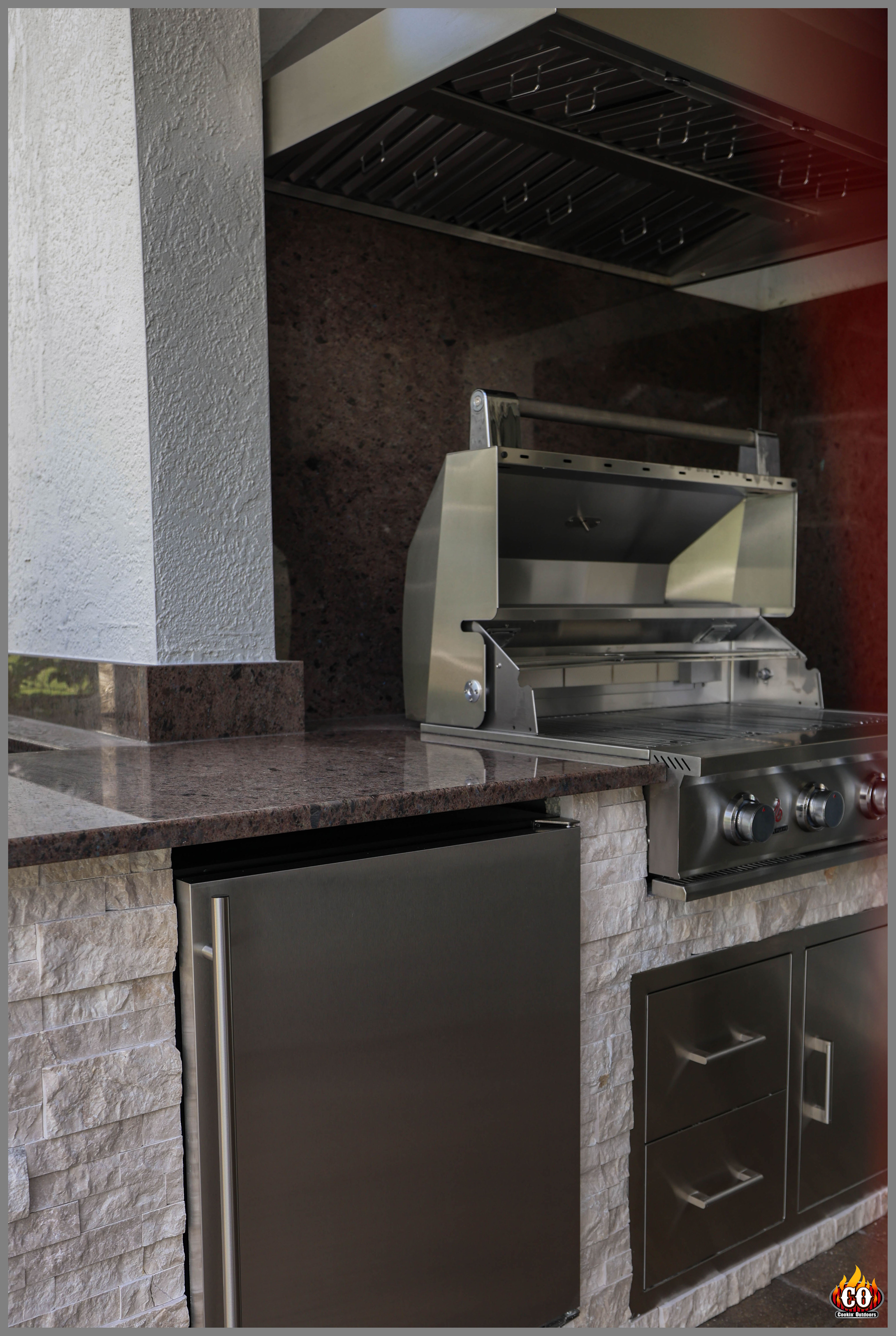 At Cookin' Outdoors, we specialize in building custom outdoor kitchens designed specifically for Florida’s unique climate. Unlike many prefabricated outdoor kitchen systems that use lightweight or combustible materials, our kitchens are form-and-poured using fiber-reinforced, non-combustible concrete. This construction method creates a solid, durable structure that stands up to the elements; including Florida’s intense sun, humidity, rain, and storms.