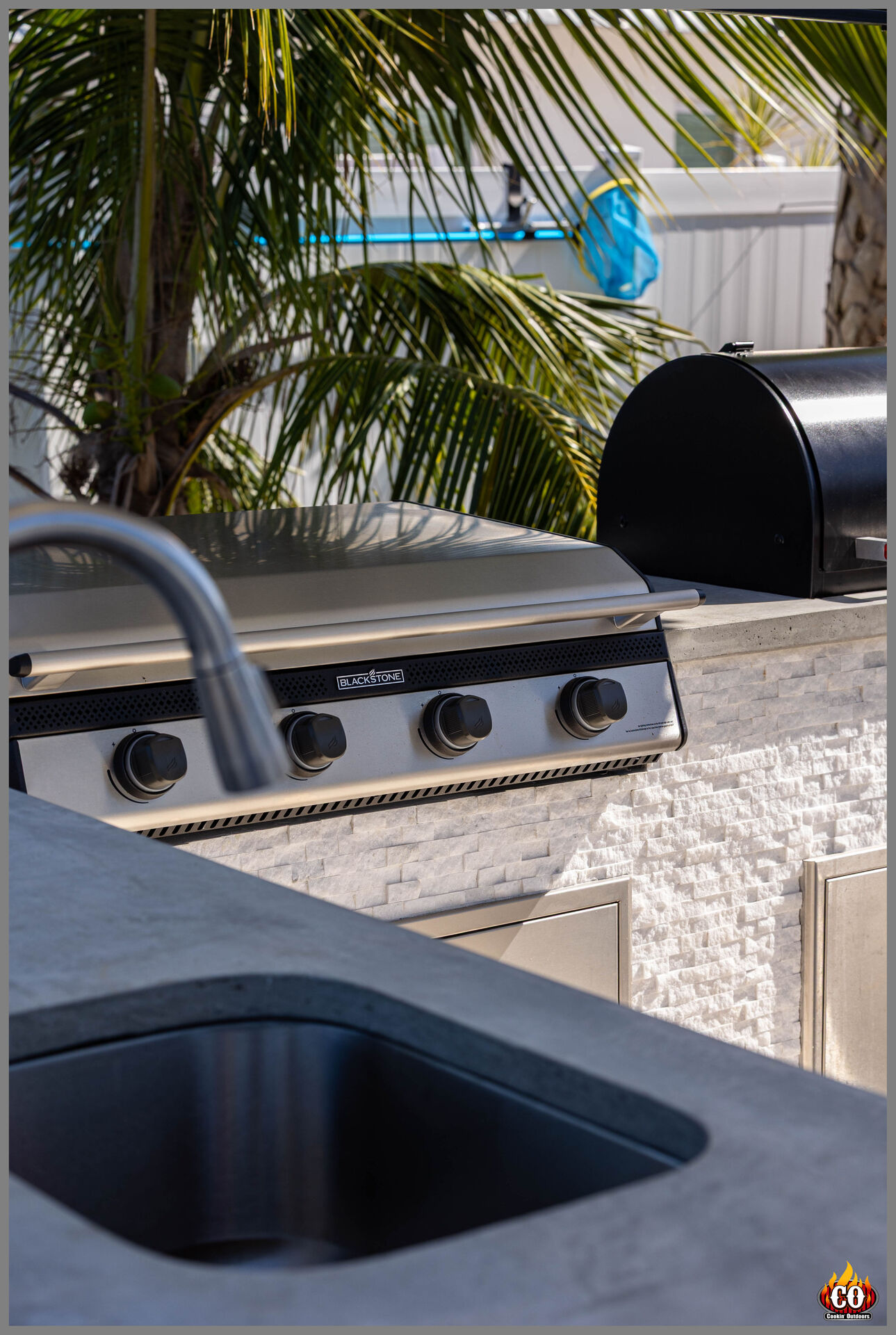Custom Outdoor Kitchen and Grill by Cookin' Outdoors with Concrete Foundation and Concrete Walls.